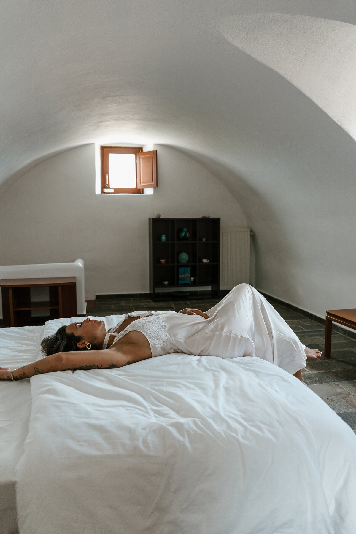 Rachel and Larissa wanted an intimate elopement where they could relax and explore the beautiful views Santoini had to offer. The morning started off with them sipping on their coffees, writing their vows together and getting ready for their special day at their airbnb. After getting in their dresses, they shared their vows at the airbnb before we headed off to the city of Oia.